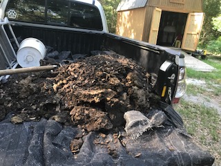 Just as I was about to begin, the thought arrived that this might be the time to take my neighbor up on his offer of free manure from the cow pasture. Away I went, got a load in my truck, and then back to the Compost Complex and the Death of the Branch Office.