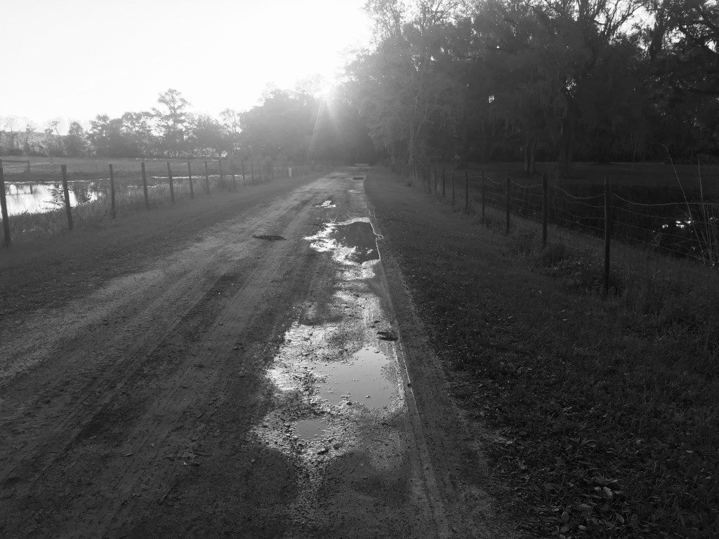 Walking the fence line, and cleaning it out means I am now lunch, no matter how much repellent I spray on my clothes and body. The vegetation near the line is covered with rainwater from yesterday and the ground is soaked. I’m drenched within minutes.