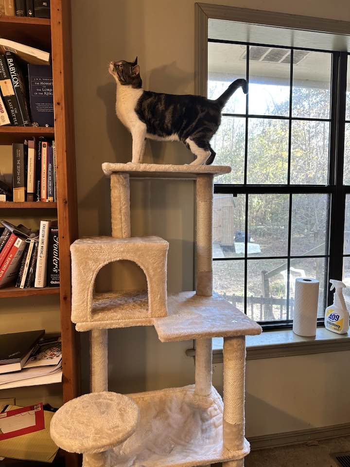 I have a lot of respect for the way this cat has taken to his new home. He seems focused, driven almost, to make this his place in the world. I’ve done everything I can think of to help him. Lilith and Wrex joined in instantly, and even Jessica Elizabeth (Come here!) has joined the new pack.