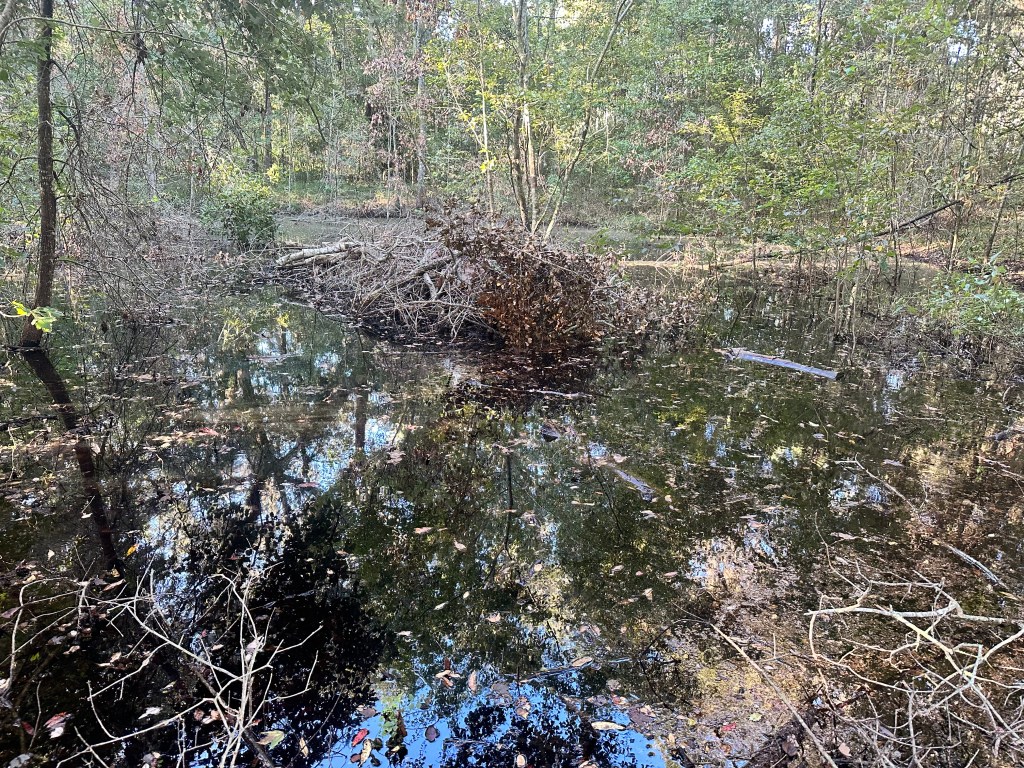 Room for limbs, branches, and tree debris has run out, but the firepit is flooded, and I mean over knee-deep in water.