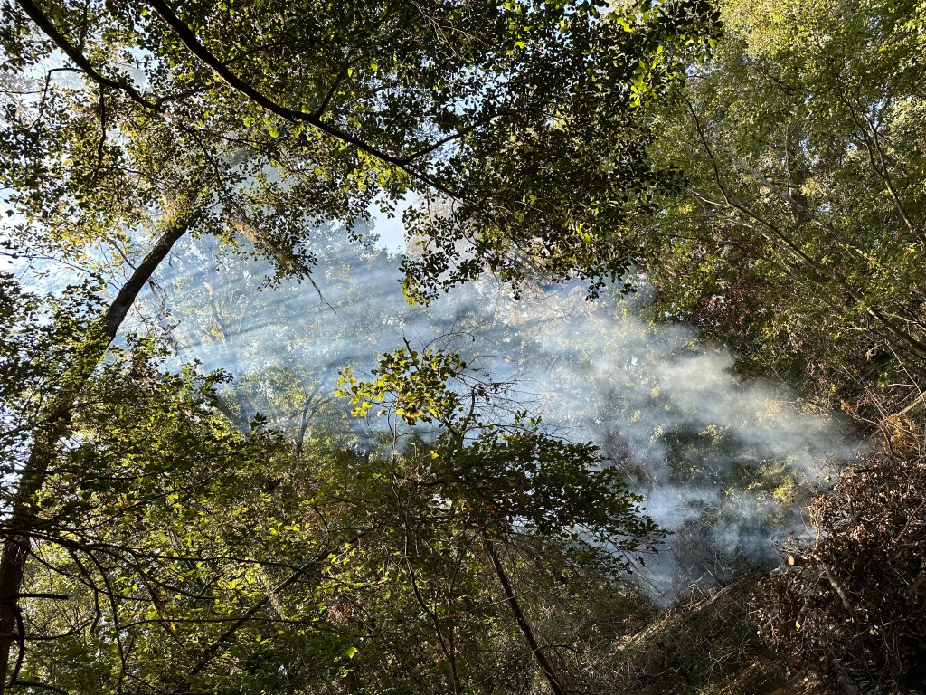 Okay, I got the fire going. How much can I do with it? I have to carry the branches over my head to get them into the fire. But the fire has awaken my inner Firesmith. I feel a yearn, a yearn to burn.