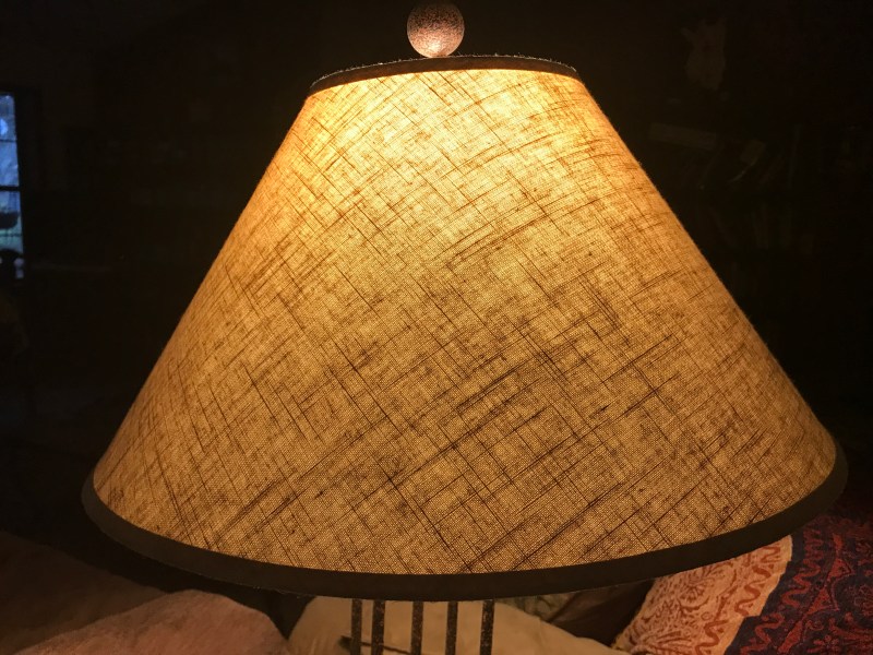 While trying to change perhaps the last incandescent bulb out of a lamp, I put my thumb through the lampshade. I bought this lamp back in 1996, when I bought my first house. New furniture, that was a must, people told me, and admittedly, the new furniture looked nice back then, and it has aged well, but now it’s all old and stained, and fragile. I didn’t foresee ever needing a lampshade, but the lamp itself is still good.